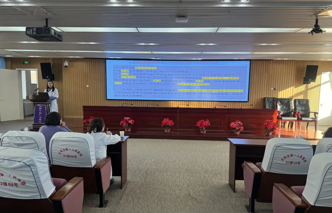 会上,医务科胡楠结合典型案例详细讲解了医疗质量安全核心制度落实的重要性和实施要点,同时就《医疗纠纷预防和处理条例》《医疗质量管理办法》《基本医疗卫生与健康促进法》等法律法规进行了业务培训,深入剖析了医疗服务过程中涉及的法律问题及潜在的法律风险。